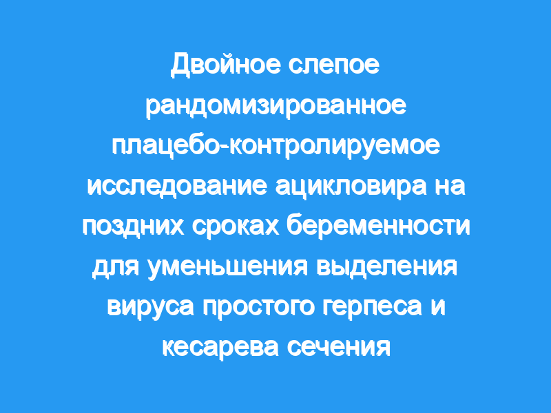 Целью этого исследования была оценка эффективности ацикловира в снижении посева вируса простого герпеса и положительной полимеразной цепной реакции и кесарева сечения. План исследования: Женщины с рецидивирующим вирусом простого генитального герпеса были рандомизированы на прием ацикловира по 400 мг три раза в день или плацебо с 36 недель беременности до родов. Подгруппа ежедневных образцов для посева вируса простого герпеса и ДНК-полимеразной цепной реакции была собрана самостоятельно. В анализе использовались критерии хи(2), точный критерий Фишера и U-критерий Манна-Уитни.