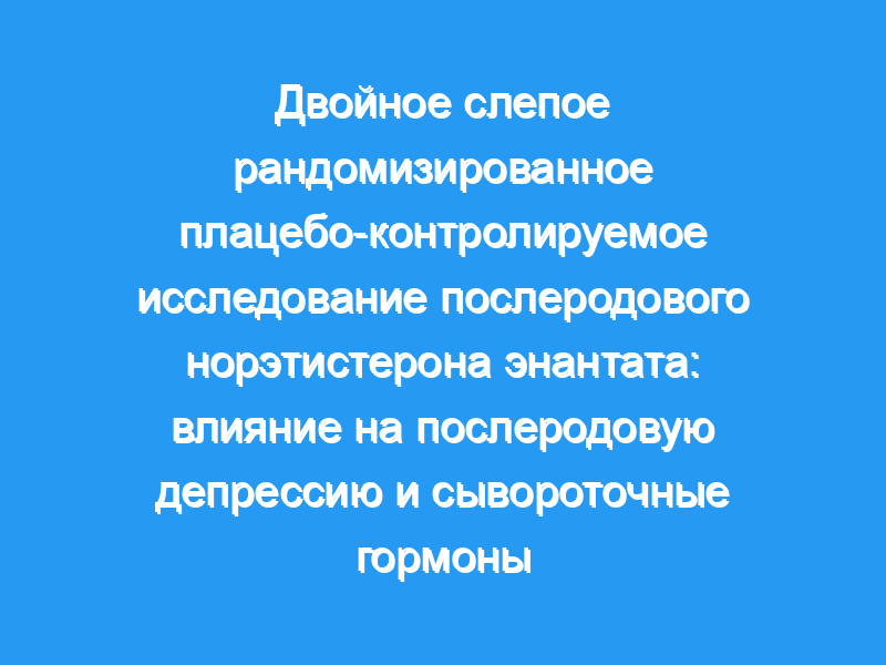 Случайное распределение в течение 48 часов после родов норэтистерона энантата путем инъекции или плацебо. Основные показатели результатов: Показатели депрессии в течение трех месяцев после родов по шкале оценки депрессии Монтгомери-Асберга (MADRS) и Эдинбургской шкале послеродовой депрессии (EPDS), 2. уровень 17 бета-эстрадиола, прогестерона, тестостерона в сыворотке крови и соотношение 17 бета-эстрадиол:прогестерон через шесть недель после родов.