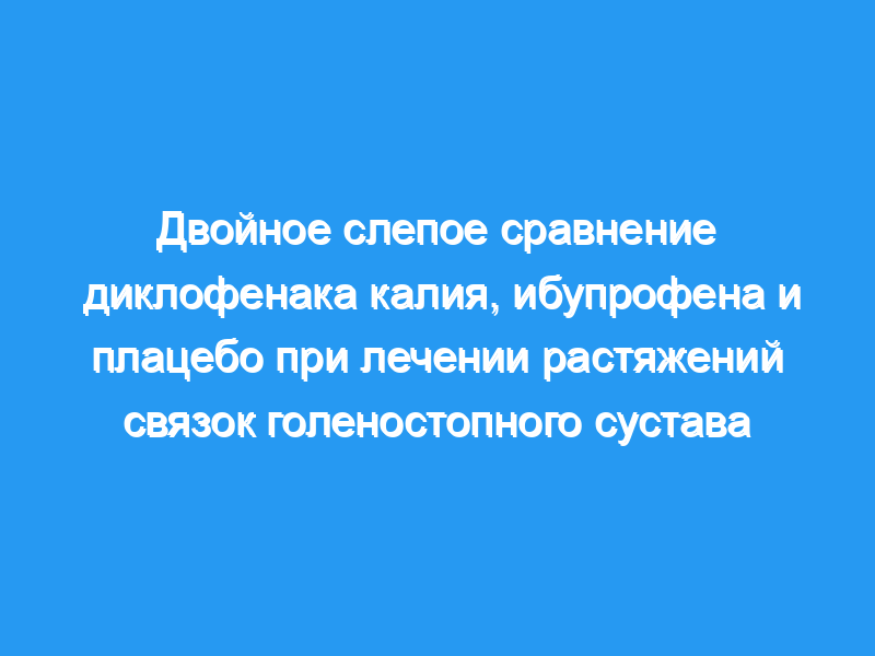 В заключение, было продемонстрировано, что диклофенак калия эффективен при лечении острых растяжений связок голеностопного сустава, и он обладает быстрым началом действия и хорошей переносимостью.