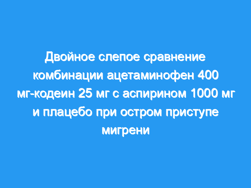 Целью этого исследования было сравнить эффективность и переносимость однократной дозы комбинации ацетаминофен 400 мг-кодеин 25 мг (ACC) аспирин 1000 мг (A) и плацебо (P) для лечения острой мигрени attac.