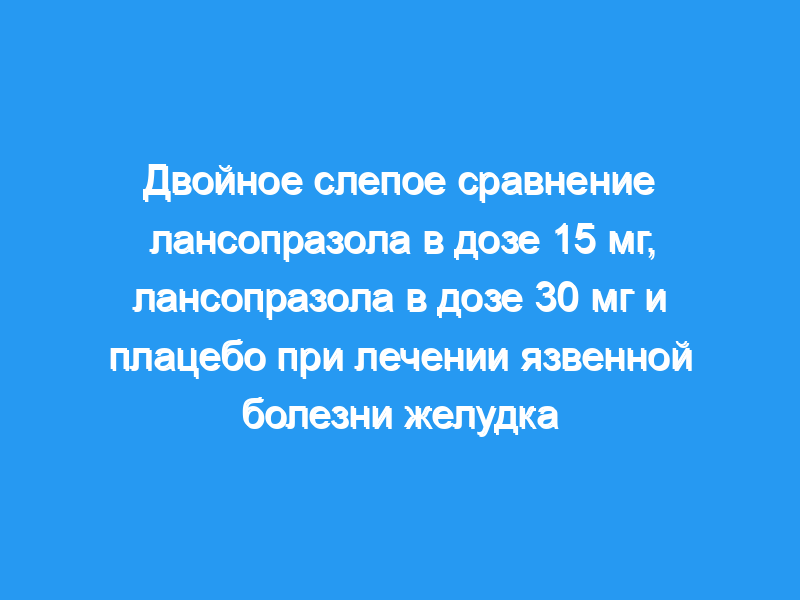 Нашей целью было сравнить безопасность и эффективность лансопразола в дозах 15 мг и 30 мг с плацебо в предотвращении рецидива у 49 пациентов с язвой желудка в анамнезе.