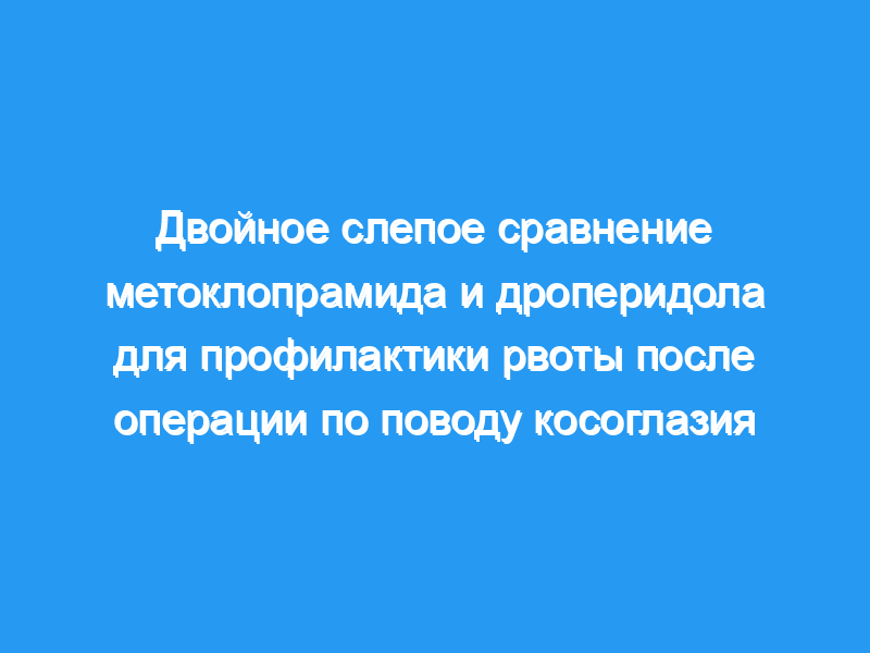 Сто десять педиатрических пациентов в возрасте от 8 месяцев до 14 лет, госпитализированных для амбулаторной операции по поводу косоглазия, были включены в рандомизированное двойное слепое исследование для сравнения дроперидола и метоклопрамида с плацебо для профилактики послеоперационной рвоты.