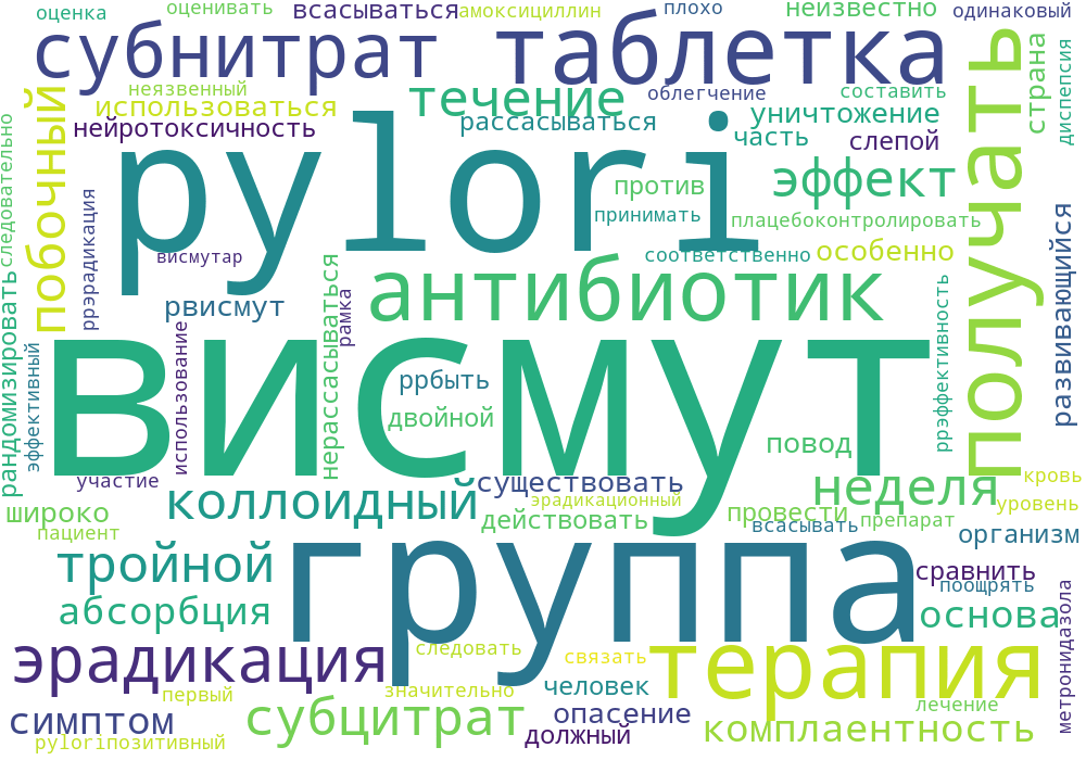 Висмут широко используется для уничтожения H. pylori, особенно в развивающихся странах, хотя существуют опасения по поводу его нейротоксичности. Должен ли висмут всасываться в организме человека, чтобы действовать против H. pylori, неизвестно. В этом исследовании мы сравнили “рассасывающийся” (коллоидный субцитрат висмута) и “нерассасывающийся” (субнитрат висмута) висмут как часть тройной терапии при эрадикации H. pylori.
