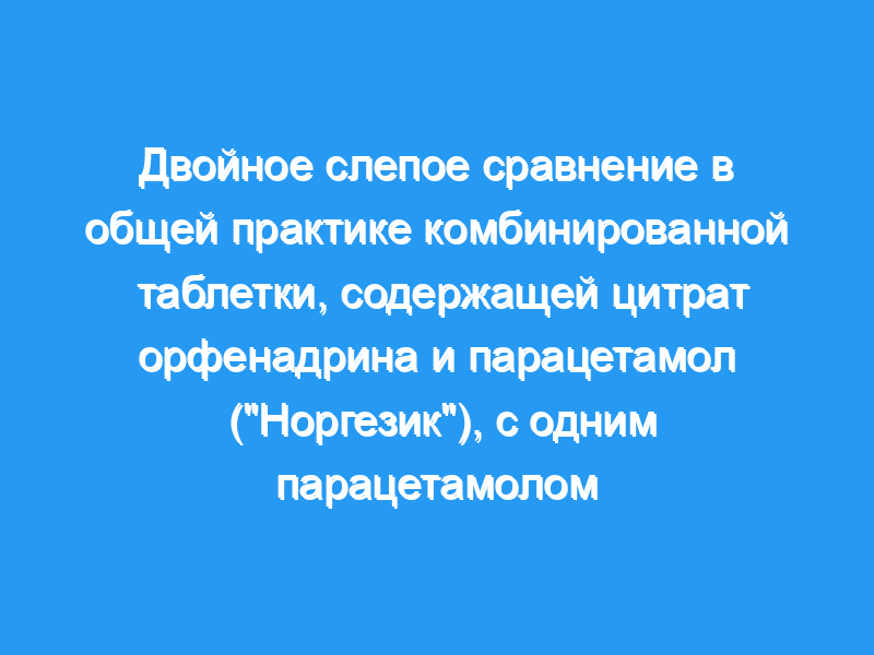 Было проведено двойное слепое исследование комбинированной таблетки, содержащей орфенадрин и парацетамол, «Норгезик», для оценки ценности этого продукта по сравнению с парацетамолом отдельно.