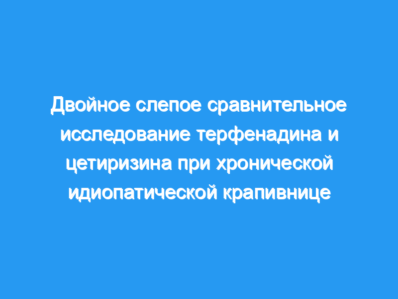 В нашем рандомизированном исследовании в параллельных группах, двойном слепом двойном плацебо, сравнивалась эффективность, начало действия и безопасность терфенадина и цетиризина при хронической идиопатической крапивнице.