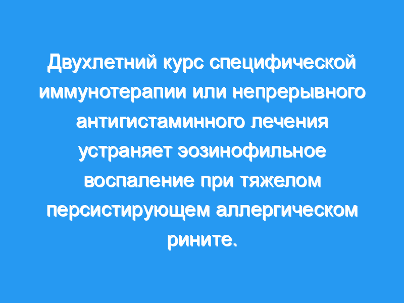 В течение изученного 2-летнего периода было обнаружено, что специфическая подкожная иммунотерапия и непрерывное пероральное антигистаминное лечение эффективны в снижении эозинофильной инфильтрации и экспрессии молекул адгезии в слизистой оболочке носа у пациентов с персистирующим аллергическим ринитом..