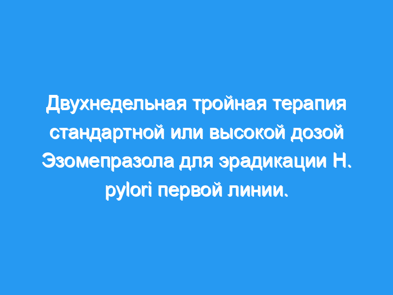 В общей сложности 145 последовательных пациентов с инфекцией H. pylori были рандомизированы для получения 14-дневной тройной терапии первой линии с кларитромицином 500 мг, амоксициллином 1 г и эзомепразолом в дозе 20 мг (стандартная терапия) или 40 мг (двойная доза терапии), каждый назначается два раза в день.