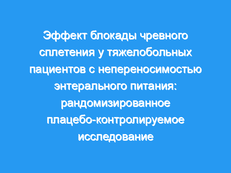 В этом исследовании мы оценили эффективность блокады чревного сплетения для лечения непереносимости пищи у тяжелобольных пациентов.