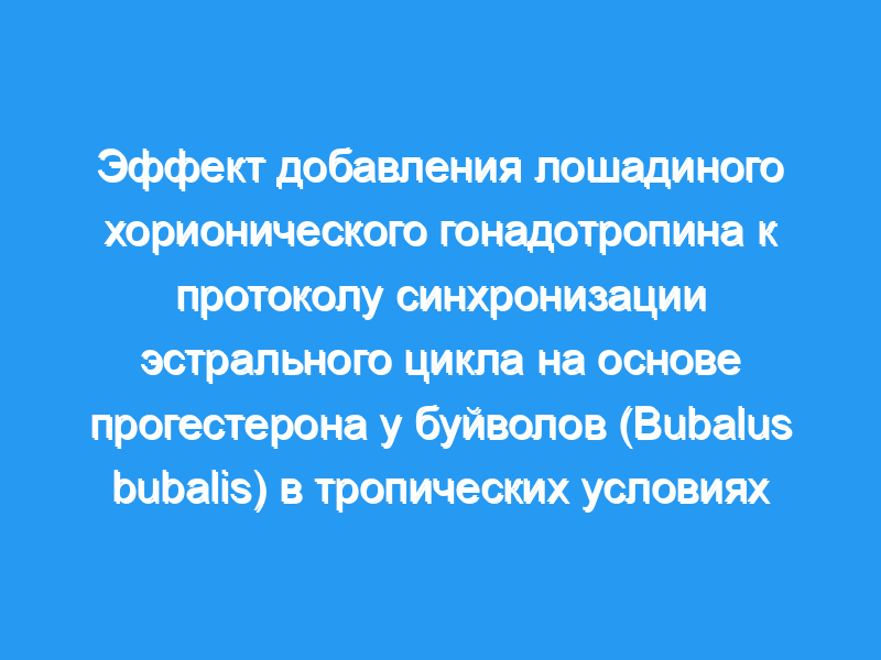 Целью этого исследования было определить, может ли добавление лошадиного хорионического гонадотропина (эКГ) к протоколу синхронизации эструса и своевременному осеменению улучшить показатели овуляции и беременности у буйволов с анэструсом в условиях тропических состояние.