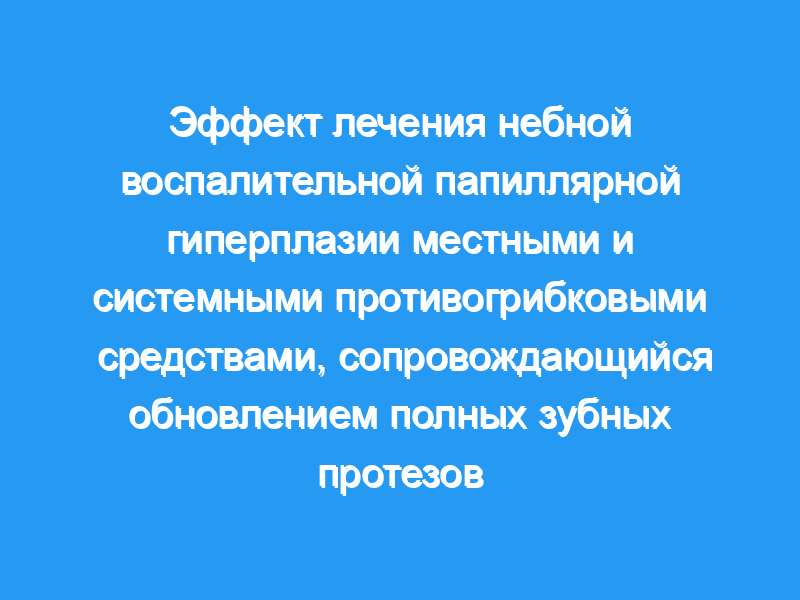 Целью данного исследования была оценка влияния местного и системного противогрибкового лечения, сопровождающегося обновлением полных зубных протезов, на воспалительную папиллярную гиперплазию неба (PIPH). Группы лечения состояли из 26 субъектов, получавших местное противогрибковое средство (миконазол, 2% гель) в течение 4 недель, и 13 субъектов, получавших системное противогрибковое средство (флуконазол, 50 мг) в течение 2 недель (тестовые группы). Десять испытуемых, оснащенных новыми полными зубными протезами, служили контрольной группой.