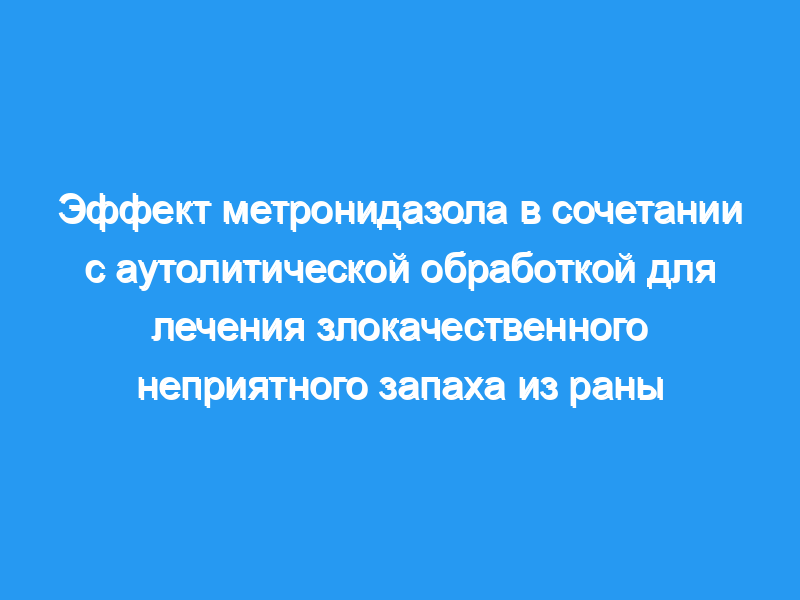 Метронидазол в сочетании с аутолитической обработкой может эффективно уменьшить неприятный запах раковых ран, контролируя инфекцию, и облегчить стигматизацию пациентов, вызванную неприятным запахом.