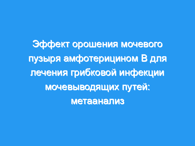 В общей сложности из баз данных было извлечено 96 исследований, и в анализ были включены 9 исследований с участием 853 пациентов. Результаты мета-анализа показали, что по сравнению с пероральным приемом флуконазола орошение мочевого пузыря амфотерицином В было более эффективным при лечении грибковой инфекции мочевыводящих путей (OR=1,66, 95%ДИ: 1,2-2,3, P=0,002) и было связано с меньшим количеством побочных реакций.