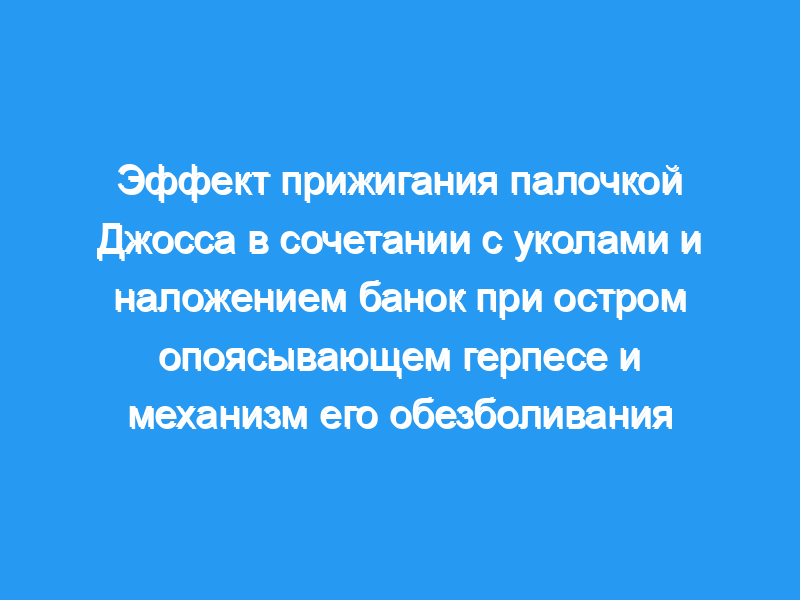 Прижигание палочкой Джосса в сочетании с уколами и наложением банок эффективно при опоясывающем герпесе, которое оказывает более быстрое и хороший обезболивающий эффект, чем у обычных западных лекарств. Его механизм может быть связан с более быстрым и в большей степени снижением содержания SP.