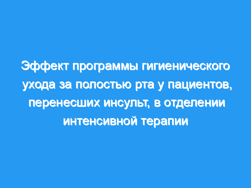 Сообщалось о последствиях программы гигиенического ухода за полостью рта (OHCP) при нескольких заболеваниях. Однако не существует исследований, изучающих влияние OHCP на пациентов, перенесших инсульт, или пациентов, находящихся в отделении интенсивной терапии (ОИТ), поэтому мы стремились исследовать потенциальный эффект OHCP.