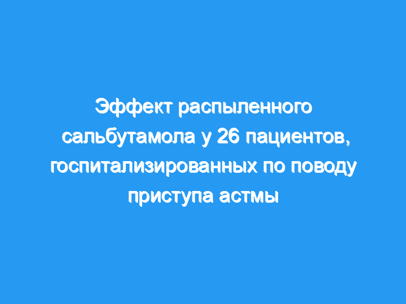 Двадцать шесть пациентов с астмой, которые были госпитализированы после острого астматического приступа и у которых пиковый поток выдоха составлял менее 50% прогнозируемого, без гиперкапнии, получили 5 мг сальбутамола, введенного микронебулизатором LSA при поступлении (HO). В H1 дополнительно распыляли 10 мг сальбутамола в случаях, когда наблюдалось увеличение PEF менее чем на 20%. В H2 все испытуемые получали стероидную терапию.