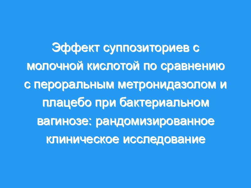 Сравнить действие молочной кислоты локально, метронидазола перорально и плацебо у женщин с бактериальным вагинозом. Дизайн: Рандомизированное клиническое исследование.