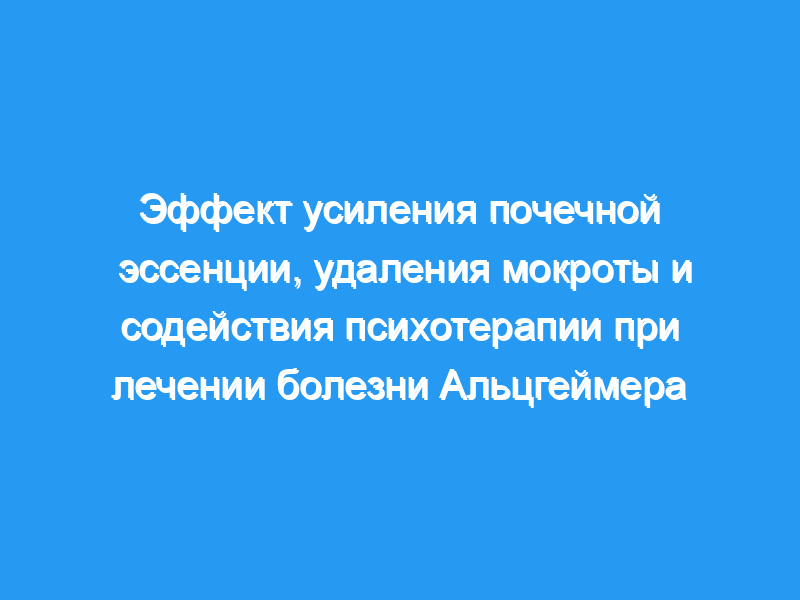 Усиление почечной эссенции, удаление мокроты и стимулирование психотерапии могут улучшить когнитивные функции и повседневную жизнь пациентов с БА. Механизм терапии может быть связан с уменьшением содержания жира в крови, удалением свободных радикалов и ингибированием перекисей липидов.