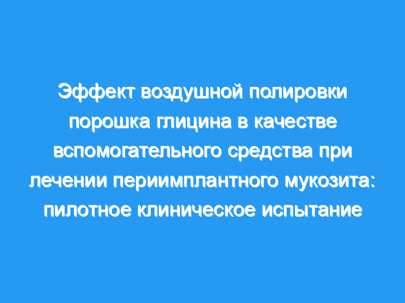 Воздушная полировка порошка глицина (GPAP) обладает потенциалом для эффективного удаления биопленок и может повысить эффективность лечения периимплантного мукозита. В этом пилотном клиническом исследовании оценивался эффект GPAP в качестве дополнительного средства при лечении периимплантного мукозита. Двадцать четыре пациента, имеющих по крайней мере один имплантат с периимплантным мукозитом, были случайным образом распределены в тестовую (12 пациентов с 17 имплантатами) и контрольную (12 пациентов с 16 имплантатами) группы. После базовой оценки все испытуемые прошли инструктаж по гигиене полости рта и нехирургическую обработку. В контрольной группе участки с глубиной зондирования (PD) ≥4 мм дополнительно обрабатывали GPAP в течение 5 секунд. Клинические параметры измерялись при повторных посещениях через 1 неделю, 1 месяц и 3 месяца.