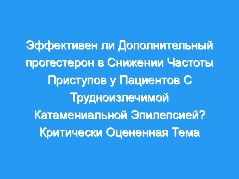 Целью данного исследования была критическая оценка имеющихся данных об эффективности прогестерона в качестве дополнительной терапии у женщин с трудноизлечимой катамениальной эпилепсией.