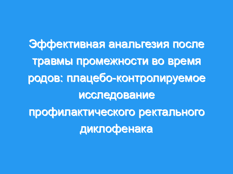 Чтобы определить, обеспечивают ли свечи диклофенака, вводимые профилактически, эффективную и длительную анальгезию после травмы промежности. Дизайн: Рандомизированное двойное слепое плацебо-контролируемое исследование.