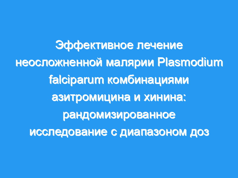 Трех- и пятидневная комбинированная терапия азитромицином и хинином представляется безопасной, хорошо переносимой и эффективной при лечении лекарственно-устойчивого P. falciparum malari.