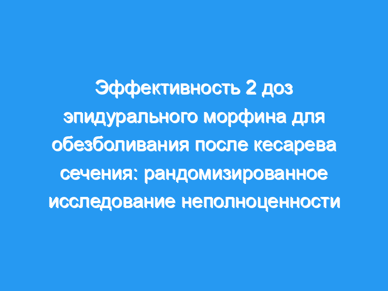 Данные были проанализированы для 87 участников. Отсутствие неполноценности было продемонстрировано, поскольку разница в медиане 24-часового потребления опиоидов между группами эпидурального морфина (ЭМ) в дозе 1,5 мг и ЭМ в дозе 3 мг составила 0 мг (односторонний 95% доверительный интервал [ДИ] 2,5 мг), что было меньше, чем предварительно установленный предел неполноценности в 3,33 мг. Не было обнаружено существенных различий между группами в медиане потребления опиоидов в течение 24-48 часов или в медиане общего потребления опиоидов в течение 48 часов. Показатели боли, общее облегчение боли и удовлетворенность через 24 и 48 часов существенно не различались между группами. В группе, принимавшей 1,5 мг ЭМ, частота умеренного и сильного зуда была ниже через 6 и 12 часов (относительный риск [ОР] 0,44, 95% ДИ 0,2-0,9 и ОР 0,41, 95% ДИ 0,2-0,8 соответственно), а тошнота и рвота были меньше через 6 часов (ОР 0,22, 95% ДИ 0,05-0,9). Не было никакой разницы в средних показателях боли через 12 недель между 2 группами.