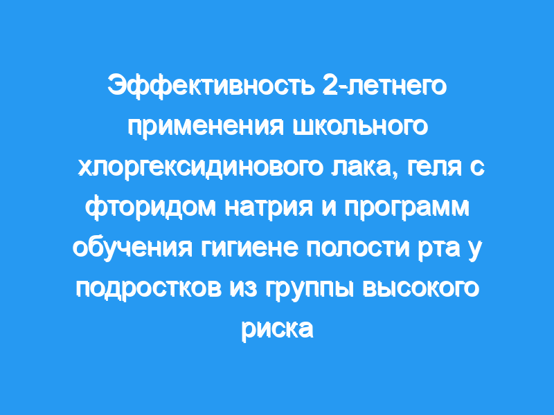 Сравнить профилактический эффект от 2-летнего применения школьного хлоргексидинового лака, геля с фторидом натрия и программ обучения гигиене полости рта среди группы высокого риска в возрасте от 11 до 13 лет с низкой активностью кариеса. Способ и материалы: В общей сложности для этого рандомизированного клинического исследования было отобрано 149 пациентов, у которых ранее был кариес в первичном зубном ряду и уровни Streptococcus mutans выше 10 (5) на исходном уровне с индексом 0 DMFS. Субъекты были распределены в одну из 3 групп для лечения хлоргексидиновым лаком (n = 50), гелем с фторидом натрия (n = 50) или программой обучения гигиене полости рта (n = 49), которые повторялись в течение 2-летнего исследования. Результаты, изученные в конце исследования, включали прирост кариеса (индекс DMFS), показатели зубного налета и количество мутантов в слюне.