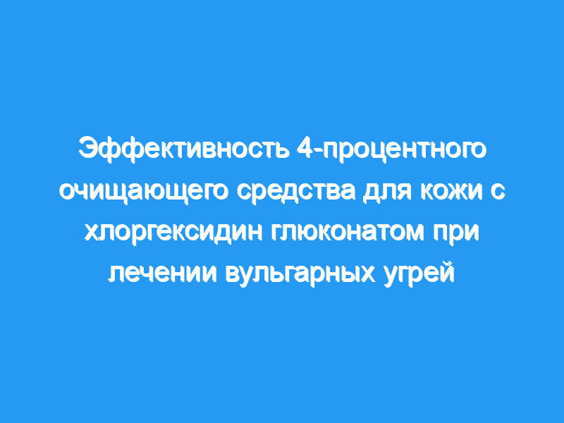 Мы провели три контролируемых сравнительных исследования для оценки эффективности 4-процентного очищающего средства для кожи с хлоргексидин глюконатом (Hibiclens) для лечения угревой сыпи у пациентов с вульгарными угрями.
