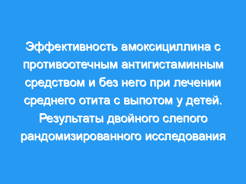 В рандомизированном, двойном слепом, плацебо-контролируемом исследовании с участием 518 младенцев и детей, которые имели средний отит с выпотом (‘секреторной’ отита), мы оценивали эффективность двухнедельного курса амоксициллина (40 мг на килограмм веса тела в день) С и без четырехнедельный курс устного противоотечное средство-антигистаминные Котор.