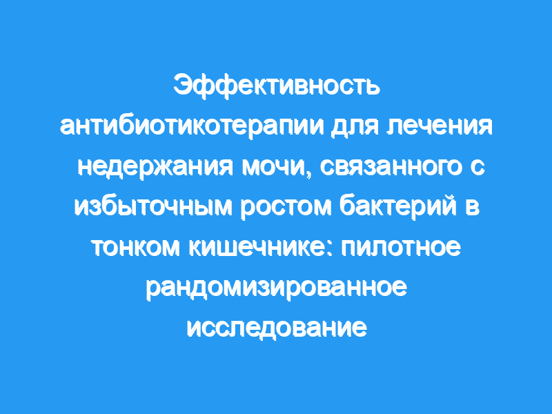 Наши результаты показывают многообещающую тенденцию, указывающую на то, что метронидазол может значительно улучшить недержание мочи, связанное с SIBO, и может быть более успешным в лечении недержания мочи, чем газопоглотители.