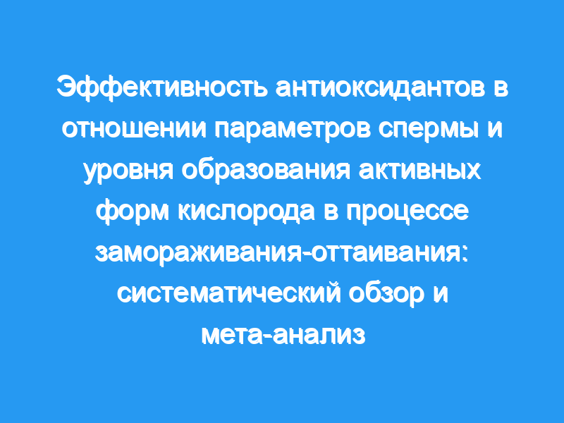 Наши результаты показывают, что антиоксиданты улучшают прогрессивную подвижность сперматозоидов. (стандартизированная средняя разница (SMD) = 1, 95% ДИ: 0,62, 1,38, p <, 0,001) и жизнеспособность (SMD = 1,20, 95% ДИ: 0,50, 1,91, p = 0,001) и снижение фрагментации ДНК сперматозоидов (SDF) и продукции перекиси водорода (H2o2), но не было значительного улучшения общей подвижности сперматозоидов после размораживания.