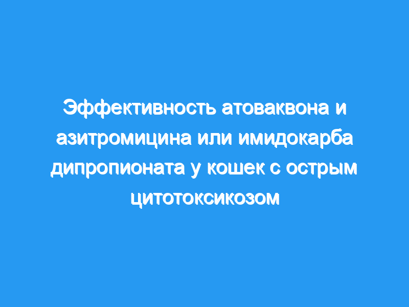 Имидокарб или комбинация атоваквона и азитромицина (A& A) были предложены для лечения кошек с цитотоксикозом, но ни один из них не был проспективно оценен на предмет эффективности. Гипотеза/цели: Что выживаемость до выписки из больницы улучшается при лечении A&A по сравнению с имидокарбом. Животные: Восемьдесят остро больных кошек с инфекцией Cytauxzoon felis, получавших лечение в одной из 18 ветеринарных клиник в 5 штатах.