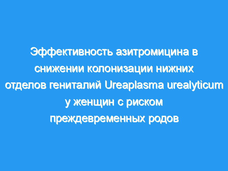 Эти данные свидетельствуют о том, что однократная доза азитромицина в 1 г составляет неэффективен в снижении колонизации нижних половых органов U. urealyticum.