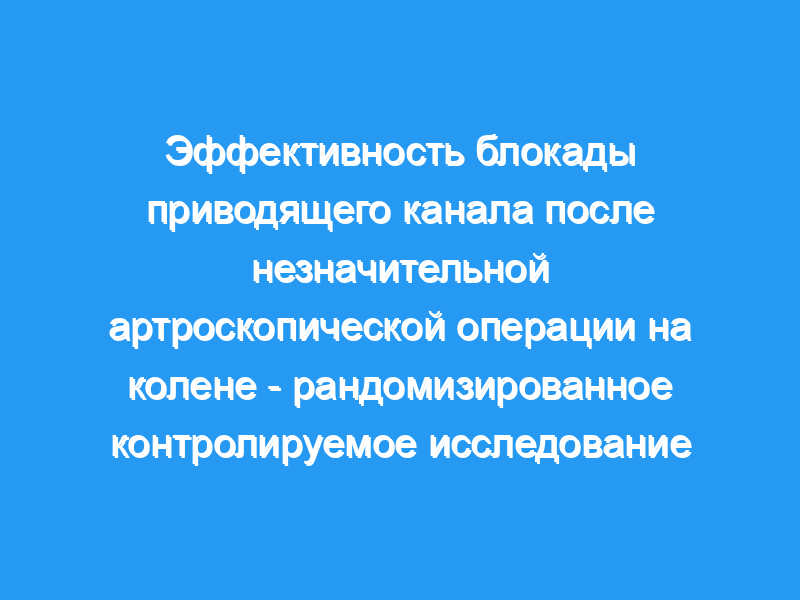 Было продемонстрировано, что блокада приводящего канала (ACB) эффективна при лечении послеоперационной боли после серьезной операции на колене. Мы предположили, что ACB уменьшит боль и потребность в обезболивающих средствах после незначительной артроскопической операции на колене.