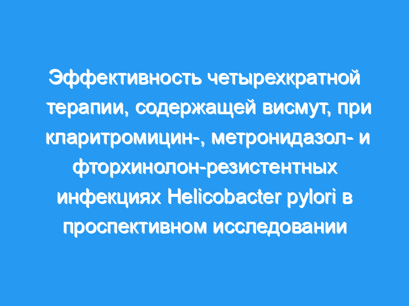 Предпосылки и цели: Мы оценили эффективность и безопасность 4-х четырехкратных схем лечения, содержащих висмут, в качестве эмпирической терапии инфекций Helicobacter pylori у пациентов, которые не реагировали на предыдущее лечение.