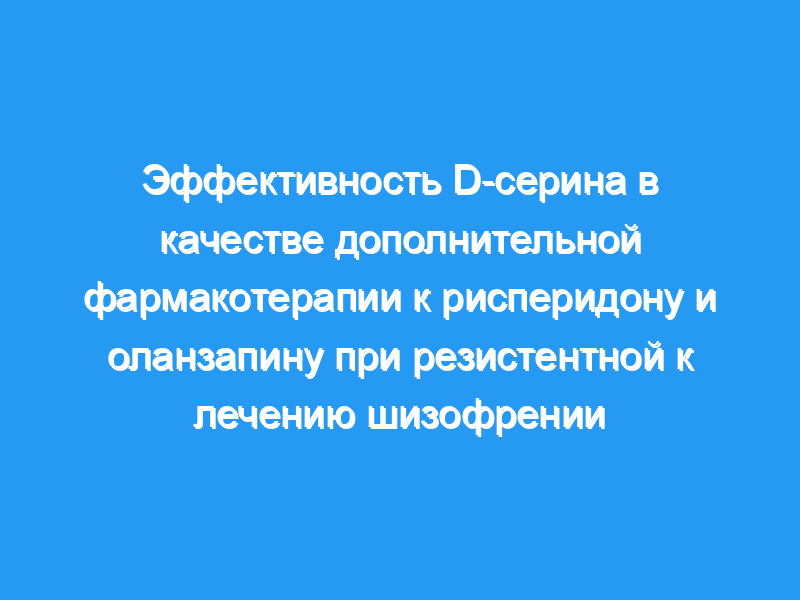 Тридцать девять пациентов с шизофренией, получавших рисперидон или оланзапин, приняли участие в двойном слепом плацебо-контролируемом 6-недельном перекрестном исследовании, в котором к антипсихотическим препаратам добавляли D-серин в дозе 30 мг/кг/сут. Показатели клинической эффективности и побочных эффектов определялись раз в две недели на протяжении всего исследования. Контролировали клинико-лабораторные показатели и уровень аминокислот в сыворотке крови.