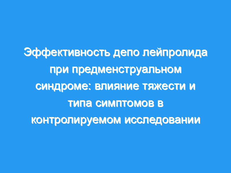 Лечение депо лейпролидом было значительно более эффективным, чем плацебо, по всем рейтинговым шкалам. Раздражительность, неврологические симптомы, болезненность груди и усталость были наиболее чувствительны к лечению. Симптомы были снижены до уровня фолликулярной фазы только у женщин без предменструальной депрессии. Пациенты с умеренной предменструальной депрессией улучшились, но остались клинически симптоматичными, в то время как в группе с тяжелой предменструальной депрессией не было отмечено улучшения ни по одному показателю эффективности. Нежелательные явления были самыми низкими у тех, у кого не было предменструальной депрессии, и самыми высокими у тех, у кого была тяжелая депрессия. Лейпролид подавлял эстрадиол и прогестерон в большинстве групп с предменструальной депрессией, но по-разному влиял на гонадотропины.