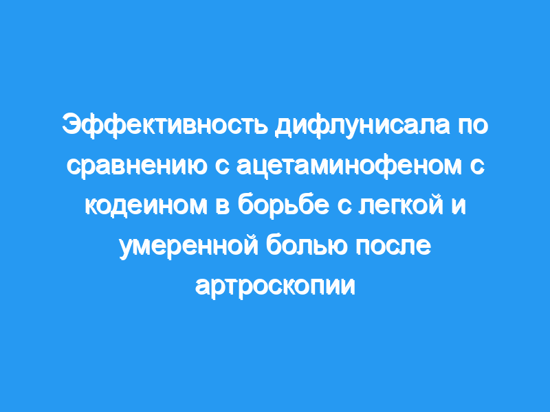 Было проведено открытое рандомизированное клиническое исследование для оценки эффективности дифлунисала по сравнению с ацетаминофеном с кодеином у пациентов, перенесших амбулаторную артроскопию коленного сустава.