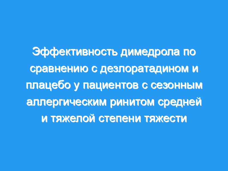 Сравнить относительную эффективность 50 мг димедрола гидрохлорида, 5 мг дезлоратадина и плацебо в облегчении симптомов у пациентов с САР средней и тяжелой степени.