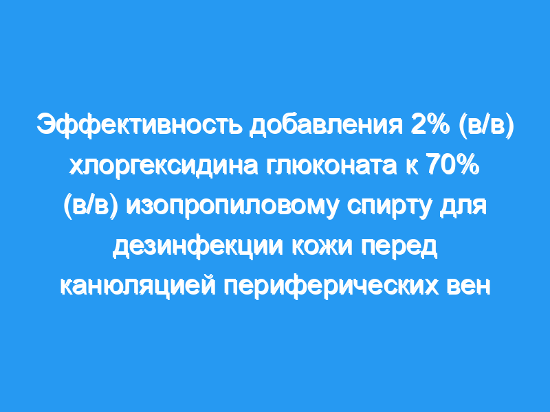Мы провели клиническое испытание, чтобы сравнить эффективность 2% (в/в) хлоргексидина глюконата в 70% (в/в) изопропиловом спирте с эффективностью только 70% (в/в) изопропилового спирта для дезинфекции кожи, чтобы предотвратить колонизацию и загрязнение периферических венозных катетеров.