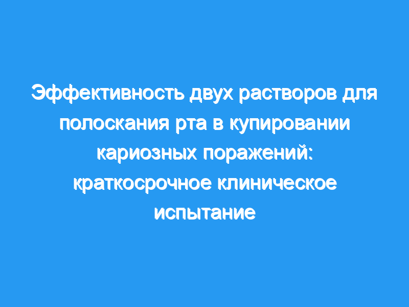 Было проведено краткосрочное двойное слепое клиническое исследование, в котором приняли участие в общей сложности 170 детей в возрасте от 11 до 15 лет с активными поражениями гладкой поверхности кариесом (в среднем 6,52). Участники были зачислены и случайным образом распределены на две равные группы. Под наблюдением исследовательской группы детей полоскали 15 мл раствора 0,05% NaF (G1) или 0,05% NaF + 0,12% CHX (G2) в течение 1 мин/сут в течение 28 дней. В начале и в конце исследования было проведено клиническое обследование детей, которые проходили контролируемую чистку зубов. Квалифицированный эксперт, который не знал о том, как обращаются с каждым испытуемым, осмотрел все гладкие поверхности, высушенные сжатым воздухом, изолированные и освещенные отражателем. Поверхность считалась активной (А) или остановленной (I). Частоту встречаемости поверхностей A или I оценивали путем вычисления разницы между числом, найденным в начале и в конце испытания.