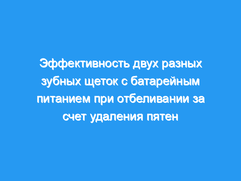 Целью данного исследования была оценка эффективности экспериментального прототипа зубной щетки с электроприводом (Crest SpinBrush Pro) и коммерчески доступной зубной щетки с электроприводом (Crest SpinBrush) в отбеливании зубов путем удаления посторонних отложений.