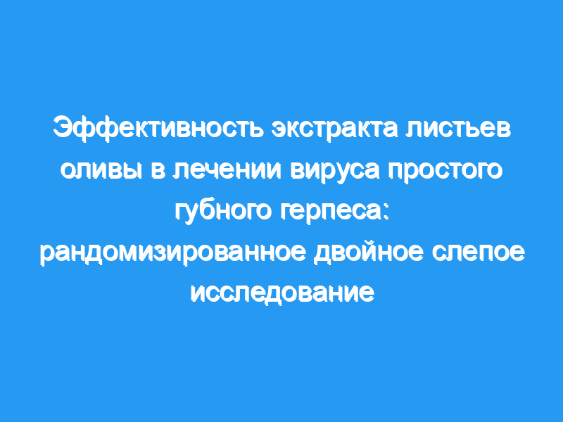 Вирус простого герпеса (ВПГ), как распространенная инфекция у здоровых людей, лечится симптоматически, но лекарственная устойчивость и побочные эффекты лекарств привлекли внимание исследователей к комплементарной медицине. Экстракт листьев оливы (OLE) обладает противовирусным действием, которое может лечить ВПГ. Текущее исследование было направлено на сравнение клинических эффектов OLE и ацикловира на ВПГ-1.