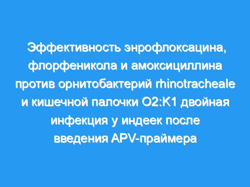 Выздоровление от респираторного заболевания, вызванного тройной инфекцией APV/E. coli/ORT, у 3-недельных индюшат было в целом наиболее успешным после лечения энрофлоксацином, независимо от продолжительности лечения, с последующим лечением флорфениколом.