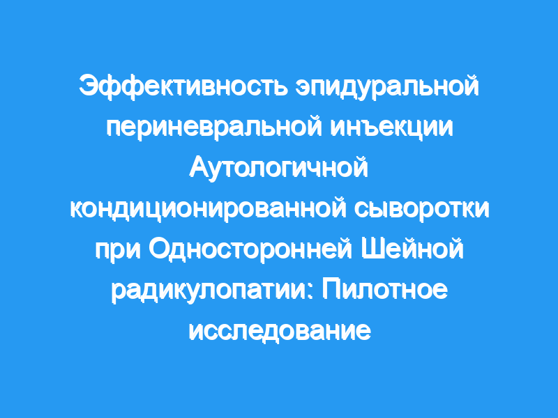 Оценка эффективности эпидуральной периневральной инъекции аутологичной кондиционированной сыворотки (ACS) по сравнению с метилпреднизоном (MPS) у пациентов с односторонней шейной радикулопатией. Краткое изложение исходных данных: Шейную радикулопатию часто лечат неоперативными и оперативными методами. Ранее использовались управляемые инъекции стероидов. Мы использовали ACS, ортобиологический препарат, полученный из собственной крови пациентов, у пациентов с односторонней шейной радикулопатией.