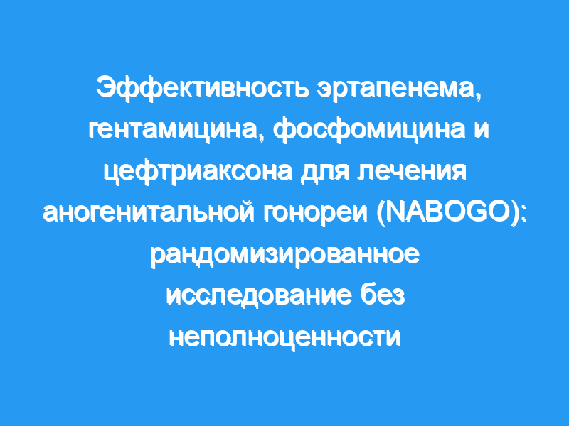 В рандомизированном контролируемом двойном слепом исследовании без неполноценности (три экспериментальные группы и одна контрольная группа) в Центре сексуального здоровья в Амстердаме, Нидерланды, мы включили взрослых в возрасте 18 лет и старше с аноректальной или урогенитальной гонореей. С помощью блоков со случайной перестановкой участники были случайным образом распределены (1:1:1:1) для приема внутримышечно 500 мг цефтриаксона (контрольная группа), внутримышечно 1000 мг эртапенема, внутримышечно 5 мг/кг гентамицина (максимум 400 мг) или перорально 6 г фосфомицина. Первичным результатом была доля участников с отрицательным тестом на амплификацию нуклеиновых кислот в предопределенном первичном инфицированном участке через 7-14 дней после лечения. Первичный анализ проводился в соответствии с протоколом (т.е. исключая те, которые были потеряны для последующего наблюдения). Модифицированный анализ намерения к лечению включал всех рандомизированных пациентов с аногенитальной гонореей, рассматривая тех, кто потерял контроль, как неудачное лечение. Неполноценность устанавливалась, если нижний 95% ДИ с поправкой на Хохберга для разницы между экспериментальной и контрольной группами был больше -10%. Для анализа побочных эффектов мы включили всех участников, которые получали лекарства. Судебное разбирательство было зарегистрировано по адресу ClinicalTrials.gov (NCT03294395) и завершена. Результаты: В период с 18 сентября 2017 года по 5 июня 2020 года из 2160 пациентов, приглашенных для участия, мы назначили 346 (16%) участникам получать либо цефтриаксон (n=103), эртапенем (n=103), гентамицин (n=102), либо фосфомицин (n=38).. Группа фосфомицина была прекращена досрочно после того, как промежуточный анализ показал эффективность менее 60%. В первичном анализе по протоколу 93 (100%) из 93 пациентов в группе цефтриаксона, 86 (99%) из 87 пациентов в группе эртапенема, 79 (93%) из 85 пациентов в группе гентамицина и четыре (12%) из 33 пациентов в группе фосфомицина очищен от гонореи (разница в риске по сравнению с цефтриаксоном -0·01 [95% ДИ от -0·08 до 0·05] для эртапенема и -0·07 [от -0·16 до -0·01] для гентамицина). Таким образом, эртапенем оказался не уступающим цефтриаксону. В анализе mITT различия в риске по сравнению с цефтриаксоном составили -0·08 (от -0·17 до 0·003) для эртапенема и -0·11 (от -0·21 до -0·04) для гентамицина. Мы наблюдали более высокую долю пациентов с по крайней мере одним побочным эффектом в группе эртапенема (58 [56%] из 103) и в группе фосфомицина (36 [95%] из 38) по сравнению с группой цефтриаксона (24 [23%] из 103). Интерпретация: Однократная доза 1000 мг эртапенема не уступает однократной дозе 500 мг цефтриаксона при лечении гонореи. Тем не менее, 5 мг/кг гентамицина (максимум 400 мг) не уступают цефтриаксону. Эртапенем является потенциальной эффективной альтернативой при аногенитальных и гонорейных инфекциях и заслуживает оценки при инфекциях, устойчивых к цефтриаксону. Финансирование: ZonMw и GGD-Амстердам. Перевод: Перевод аннотации на голландский язык см. в разделе Дополнительные материалы.