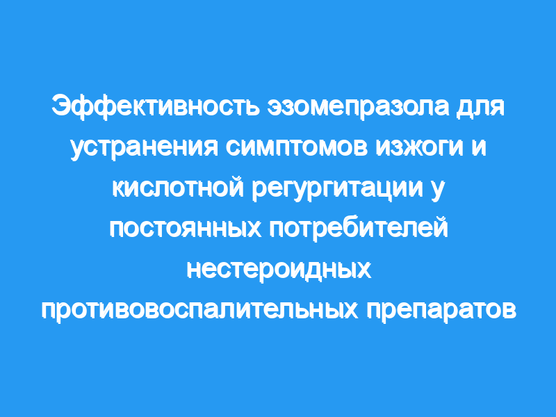 Изжога и срыгивание часто встречаются у пациентов, принимающих НПВП, и эзомепразол эффективен для устранения этих симптомов.