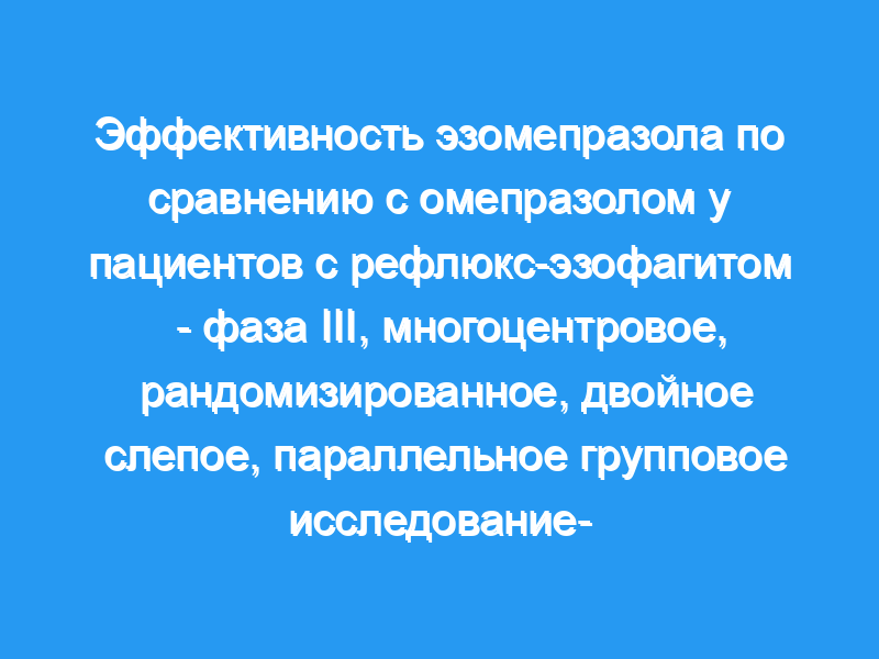Эффективность эзомепразола в дозе 40 мг/сут (Е40) и 20 мг/сут (Е20) в качестве начального лечения рефлюкс-эзофагита (РЭ) сравнивали с омепразолом в дозе 20 мг/сут (О20) в этом многоцентровом, проспективном, рандомизированном двойном слепом исследовании.