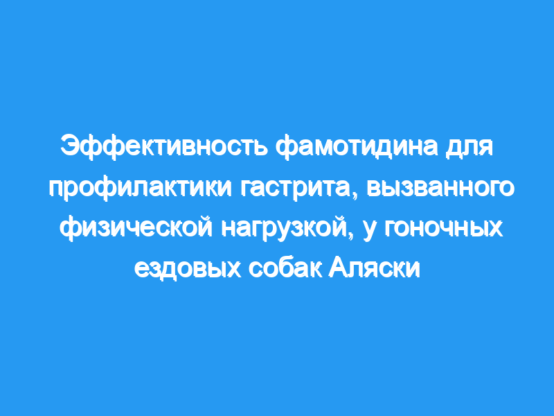 Омепразол уменьшает тяжесть гастрита, вызванного физической нагрузкой, но не уменьшает распространенность поражений желудка у ездовых собак. Частое кормление ездовых собак во время соревнований, вероятно, приводит к снижению абсорбции омепразола и, следовательно, к снижению эффективности. Гипотеза: Фамотидин, блокатор гистамина-2 с хорошей биодоступностью в присутствии пищи, может снизить частоту и тяжесть желудочных заболеваний, вызванных физической нагрузкой, у ездовых собак. Животные: Шестнадцать здоровых аляскинских ездовых собак (4 самки, 12 самцов, все целые, возраст 2-6 лет).