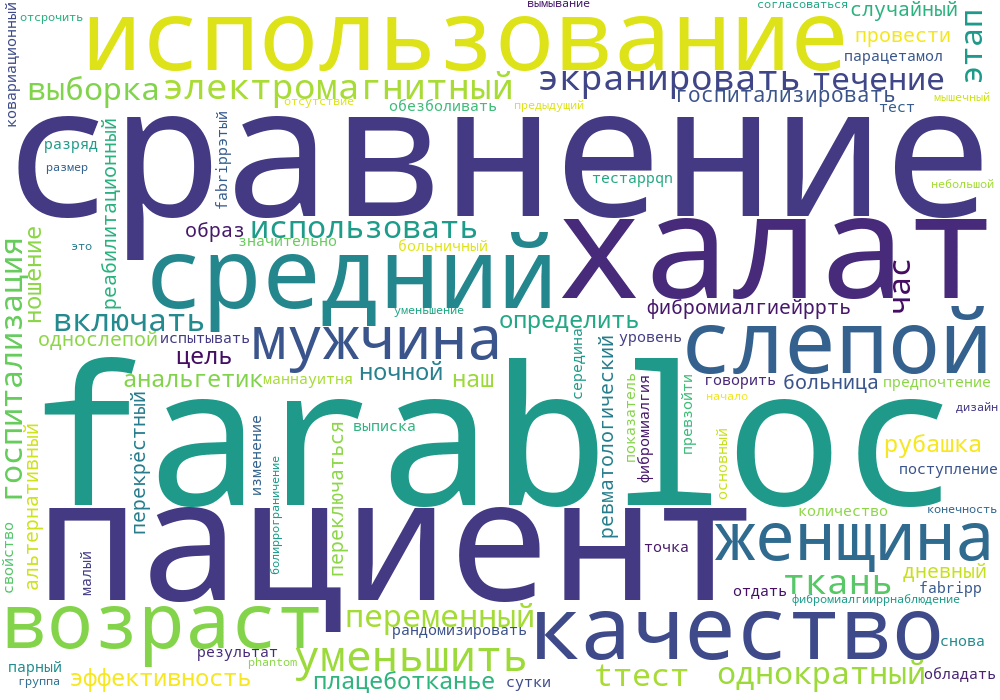 В ревматологической и реабилитационной больнице мы провели 1-ю фазу однократного- слепое исследование пациентов, использующих халаты Farabloc (F) или плацебо (P) в течение 8 часов на ночь в течение 20-дневной госпитализации, и фаза 2, однослепое перекрестное исследование пациентов, использующих халаты F и P случайным образом и альтернативно переключающихся после 10 из 21 дня госпитализации (фаза 1: 42 F, средний возраст 49,02 года, 35 женщин, 7 мужчин, 84 P, средний возраст 48,08 года, 72 женщины, 12 мужчин, фаза 2: 25 F/P, P/F или P/P, средний возраст 44,0 года, 24 женщины, 1 мужчина). Исследование включало рандомизированное и слепое использование больничного халата 8 часов в сутки либо F, либо P fabri.